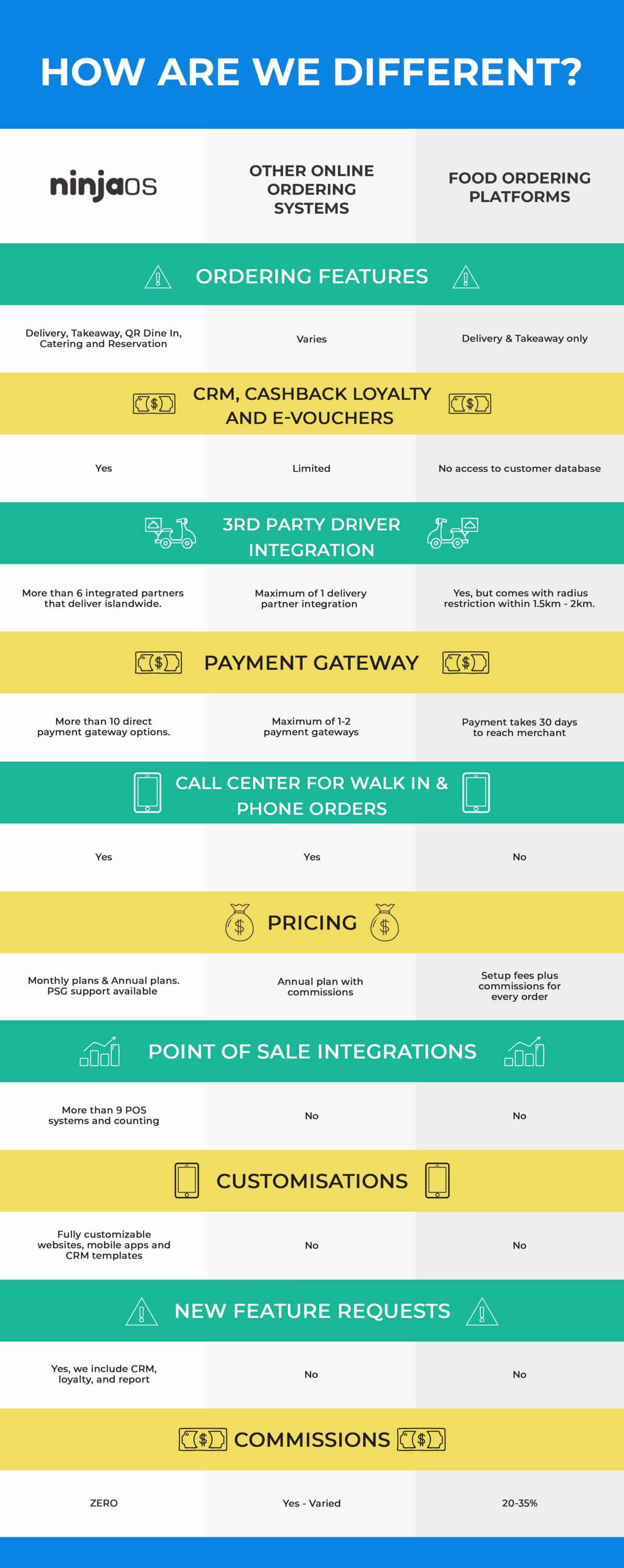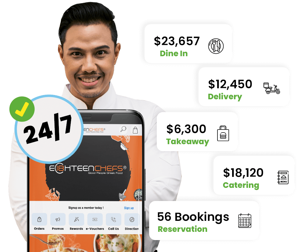 Customers can order for Delivery, Takeaway, QR Dine In, Catering, Reservation and enjoy the same experience in store or at home using their mobile phone, tablet, laptop or desktop.